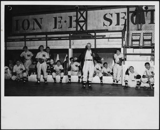 [Unidentified members of the Washington Senators in "Damn Yankees".]
