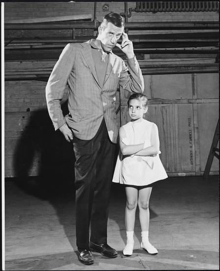 [Valerie Lee as Susan Walker and Laurence Naismith as Mr. Kris Kringle in "Here's Love".]