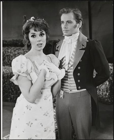 [Polly Bergen as Elizabeth Bennett and Farley Granger as Fitzwilliam Darcy in "First Impressions".]
