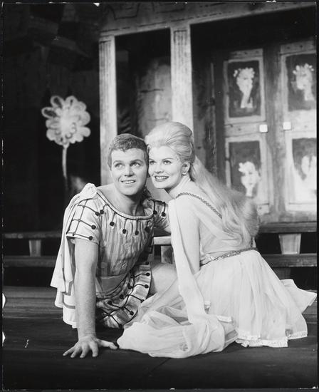 [Brian Davies as Hero and Preshy Marker as Philia in "A Funny Thing Happened on the Way to the Forum".]
