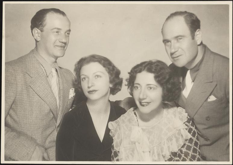 [Menasha Skulnik and Anna Teitelbaum with an unidentified couple.]