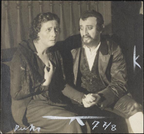 [Berta Gersten and Maurice Schwartz in an unidentified production.]