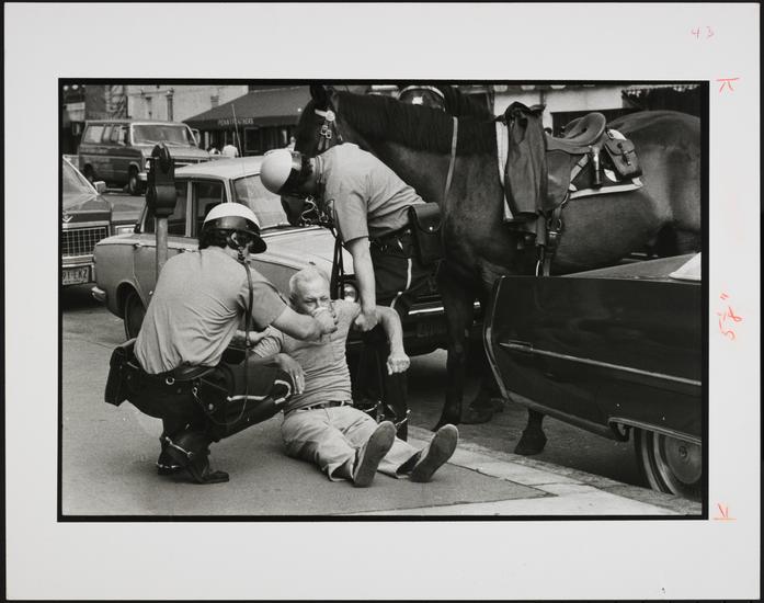 New York City, 9th Police Precinct, Man Reported Sick on City Street, Waiting for Hospital Wagon, 1978
