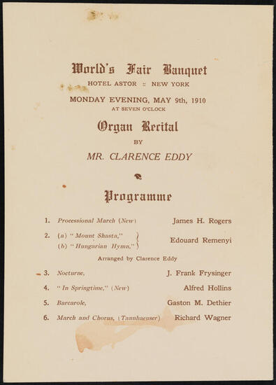 Testimonial Dinner to the Hon. Ignace Jan Paderewski given by the Civic Forum, New York
