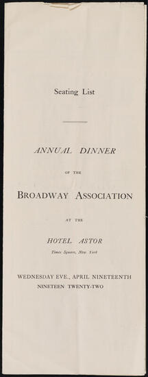 Annual Dinner of the Broadway Association On Its Tenth Anniversary