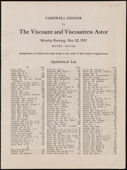 Annual Dinner of the Broadway Association On Its Tenth Anniversary