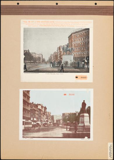 Description Union Square, East side; Union Square | J. Clarence Davies Street Views Scrapbook.