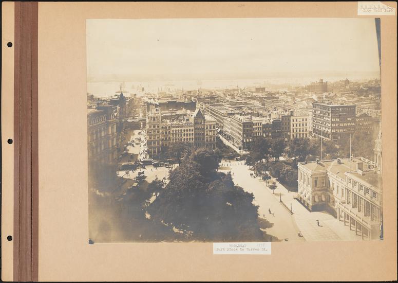 Description Broadway - Park Place to Warren St. | J. Clarence Davies Street Views Scrapbook.