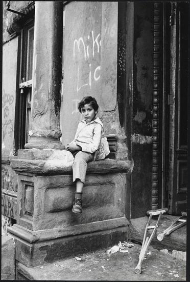 Boy in Front of Burned Out Building, Harlem, NYC, 1972