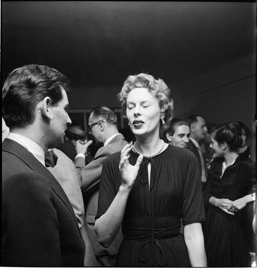 Leonard Bernstein [Leonard Bernstein talking to a woman at a party.]