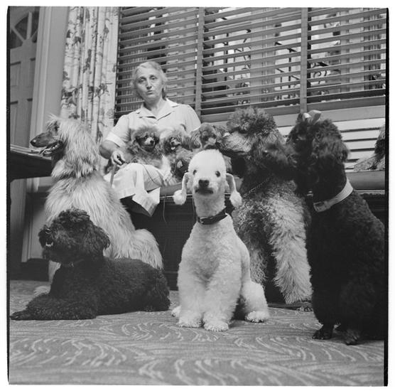 A Dog's Life in the Big City [Woman walking two poodles.]