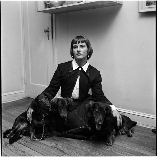 A Dog's Life in the Big City [Woman holding a small dog.]