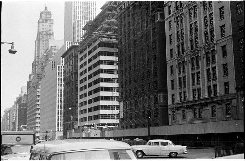 Park Avenue [Statue in apartment building courtyard and view of construction.]