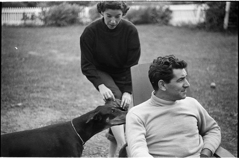 Leonard Bernstein [Leonard Bernstein with a dog.]