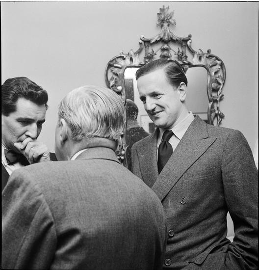 Leonard Bernstein [Party guests talking to Leonard Bernstein.]