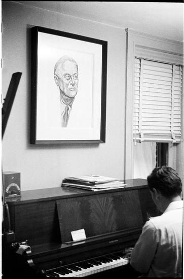 Leonard Bernstein [Leonard Bernstein at a piano.]