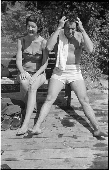 Leonard Bernstein [Leonard Bernstein and a woman in bathing suits.]