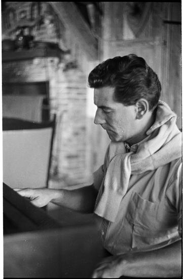 Leonard Bernstein [Leonard Bernstein at a piano looking at sheet music.]