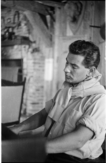 Leonard Bernstein [Leonard Bernstein at a piano.]