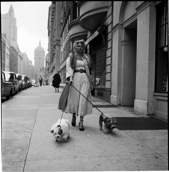 A Dog's Life in the Big City [Woman walking two poodles.]