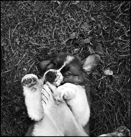 A Dog's Life in the Big City [Veterinarian examining a puppy.]