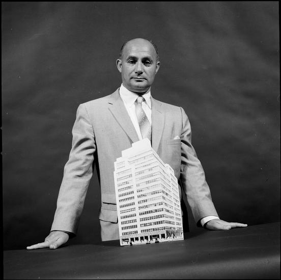 Park Avenue [Ely Jacques Kahn with models of buildings he designed.]