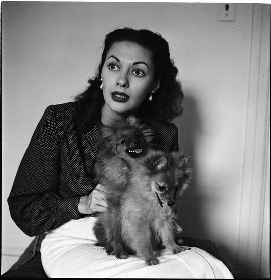 A Dog's Life in the Big City [Woman holding a small dog.]