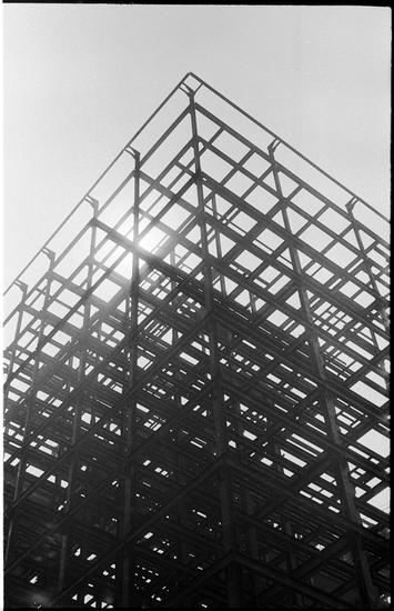 Park Avenue [Men painting the exterior of 300 Park Avenue, windows of an office building and site of the future Union Carbide building.]