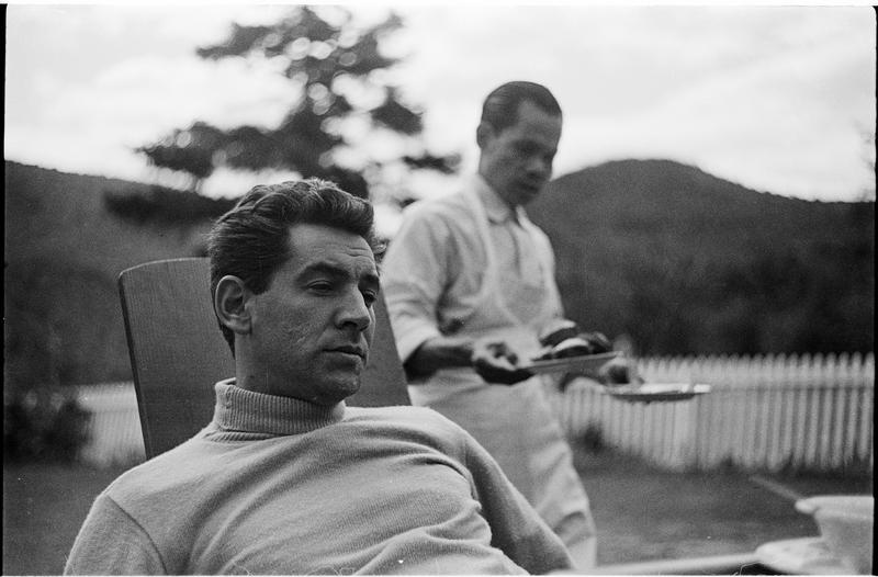 Leonard Bernstein [Leonard Bernstein sitting outside.]