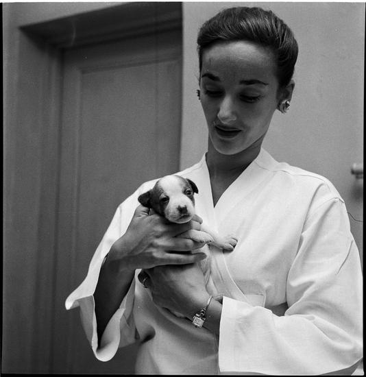 A Dog's Life in the Big City [Woman holding a small dog.]