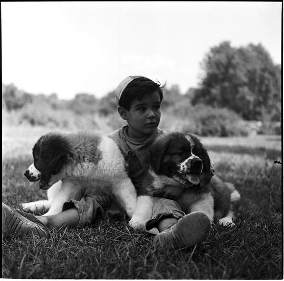 A Dog's Life in the Big City [Boy with two puppies.]