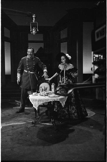 [Talullah Bankhead and an actor rehearsing for The All Star Revue television show.]