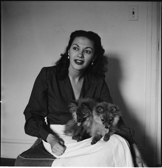A Dog's Life in the Big City [Woman holding a small dog.]