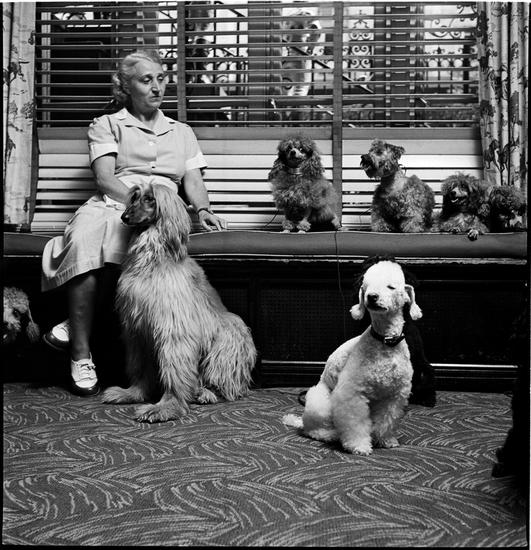 A Dog's Life in the Big City [Woman walking two poodles.]