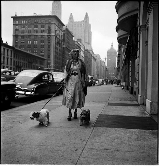 A Dog's Life in the Big City [Woman walking two poodles.]