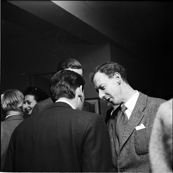 Leonard Bernstein {Men talking at a party.]