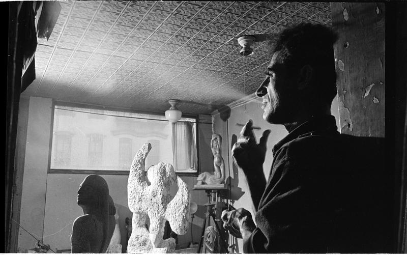 Pint-Size Sculptor with Big Ideas [Koren Der Harootian in his studio.]