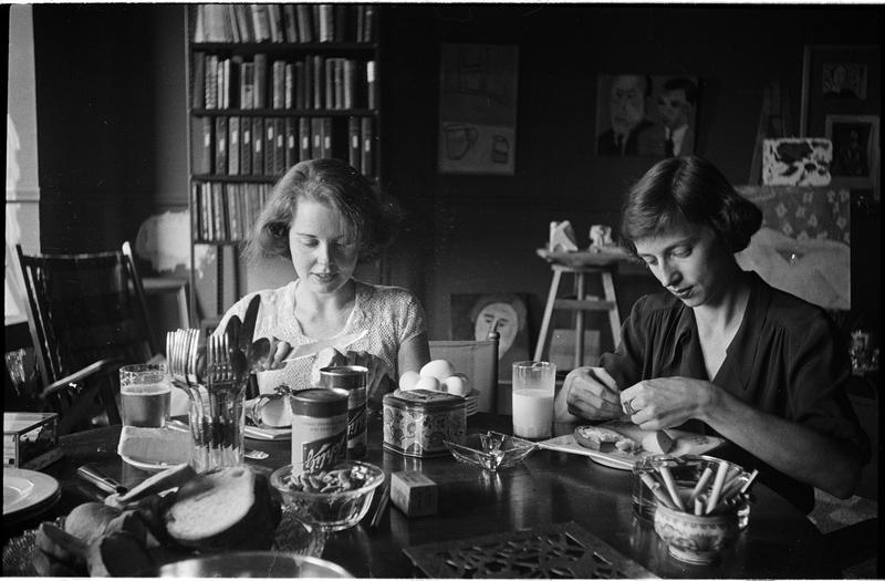 Leonard Bernstein [Women eating at a party as a man talks to her.]