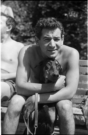 Leonard Bernstein [Leonard Bernstein with a dog.]