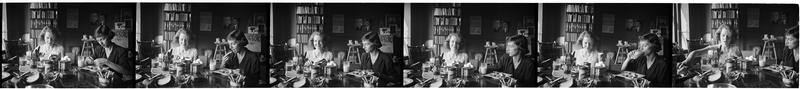 Leonard Bernstein [Women eating at a party as a man talks to her.]