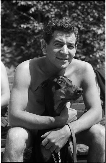 Leonard Bernstein [Leonard Bernstein with a dog.]