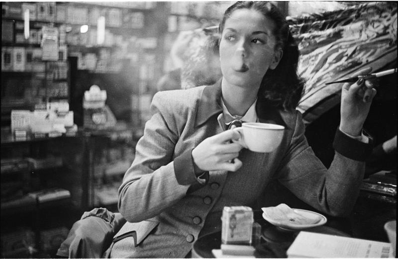 Rosemary Williams, Show Girl [Rosemary Williams drinking coffee and smoking a cigarette.]