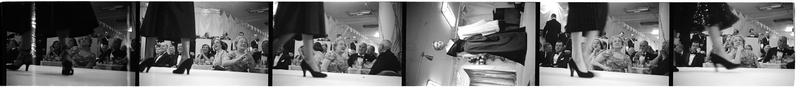 Gimbels Fashion Show [Audience watching a model walk down the runway.]