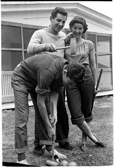 Leonard Bernstein [Leonard Bernstein playing croquet with a man and a woman.]