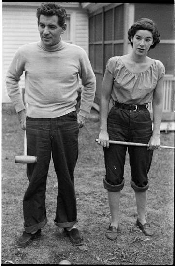 Leonard Bernstein [Leonard Bernstein and a woman playing croquet.]
