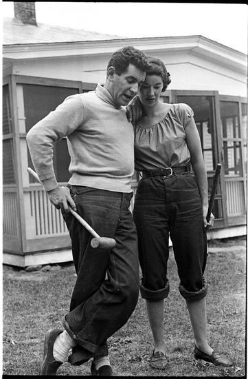Leonard Bernstein [Leonard Bernstein and a woman playing croquet.]