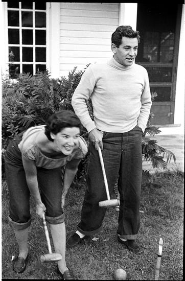 Leonard Bernstein [Leonard Bernstein and a woman playing croquet.]