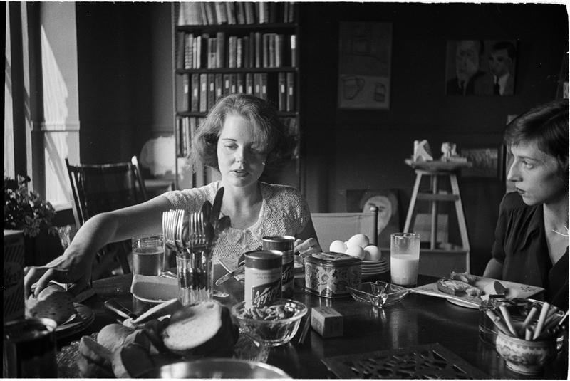 Leonard Bernstein [Women eating at a party as a man talks to her.]