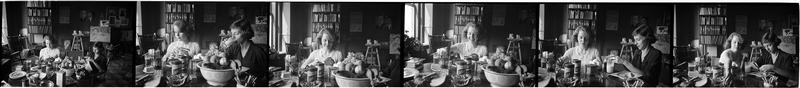 Leonard Bernstein [Women eating at a party as a man talks to her.]