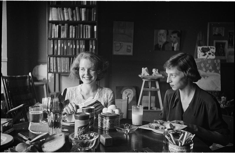 Leonard Bernstein [Women eating at a party as a man talks to her.]